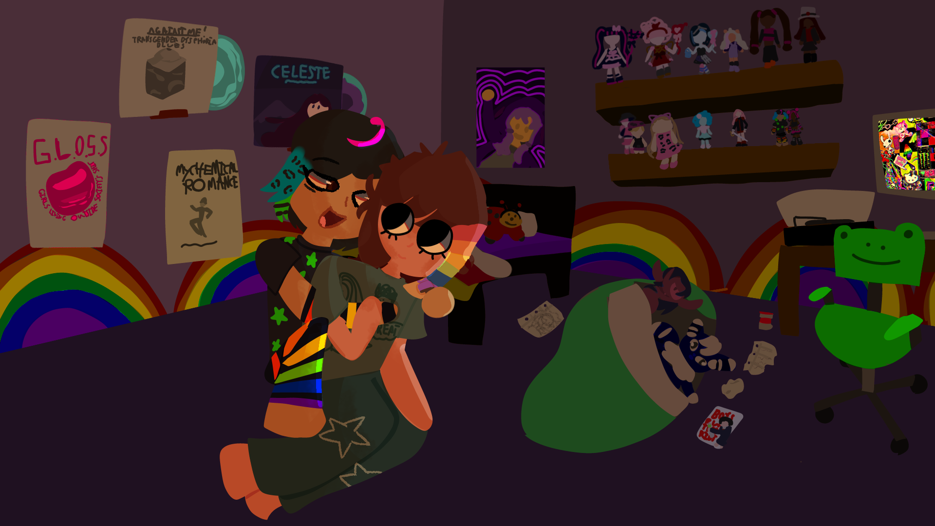 I always find myself envying cis kids... mostly cis boys but sometimes girls too. Mostly when they're walking with their friends or such, it's always, why can't I have that? But I love the trans community. I like being trans, even though it's hard sometimes.
