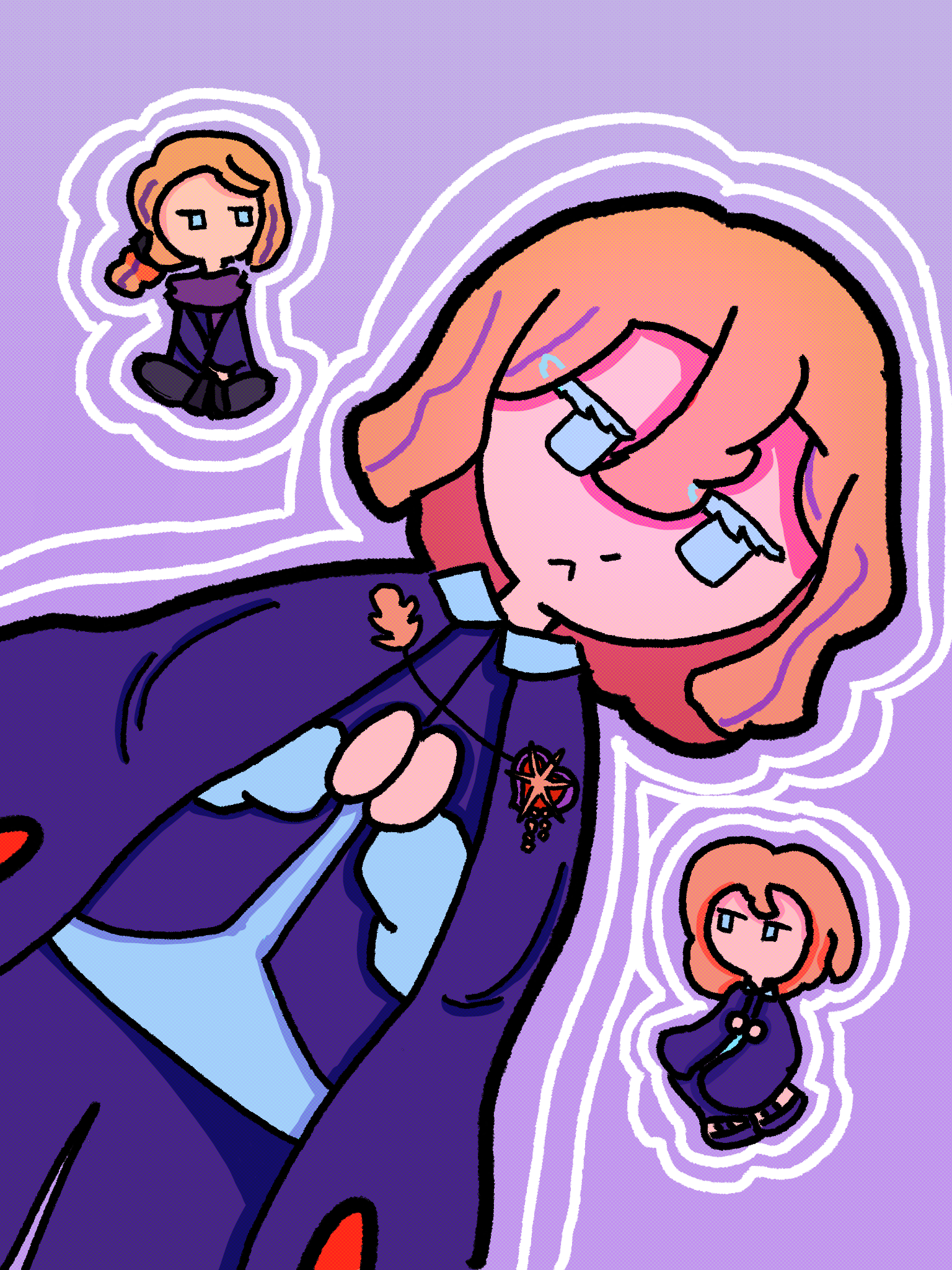 was reminded of my old gacha era and wanted to try mimicking those animation memes, except i was too lazy to recreate her so i just winged it and drew it without a base. it was kind of refreshing to draw in this style. i remember searching up tutorials when i was younger and thinking those edits were so cool.